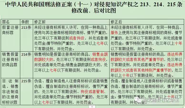 修改后的条款特点:1、提高量刑;2、扩大假冒注册商标罪保护范围;3、增加立案范围:其他严重情节。体现适当提高了刑法所规定的假冒注册商标罪,销售假冒注册商标罪,非法制造、销售非法制造的注册商标标识罪犯罪的刑罚,进一步加大惩治力度的立法目的。